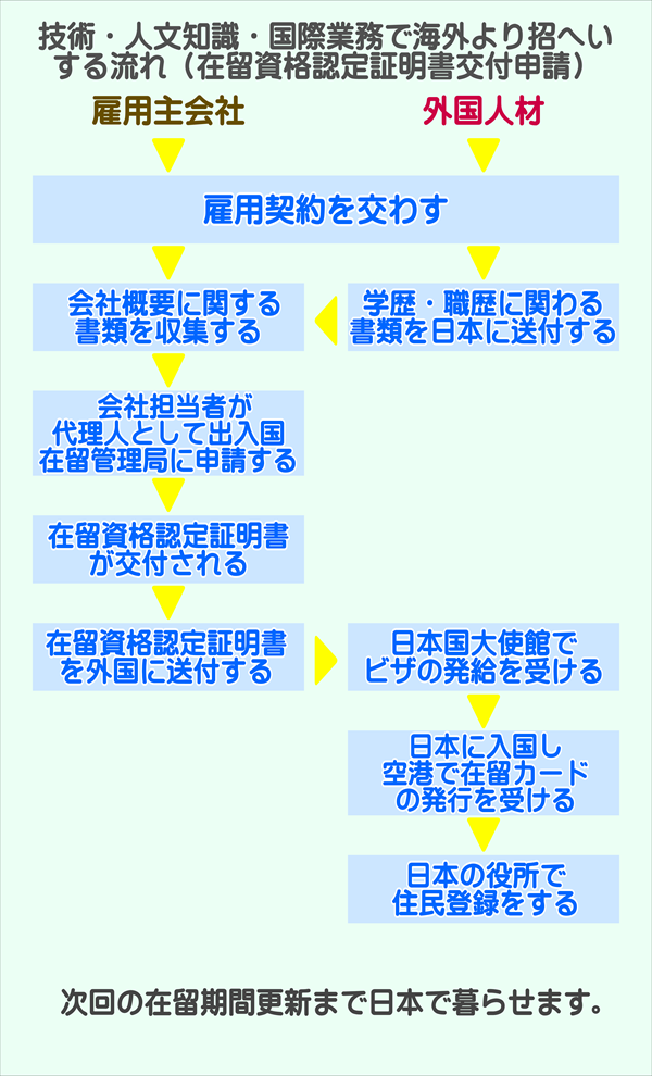 留学生を採用する場合、在留資格が「留学」のままでは就労させてはいけません。在留資格を「技術・人文知識・国際業務」に変更する手続きを出入国在留管理局に対して行う必要があるのです。