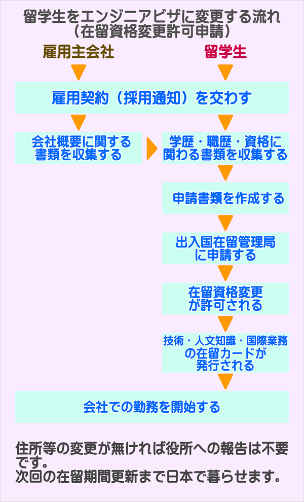 留学生をエンジニアとして採用し在留資格を変更する流れ