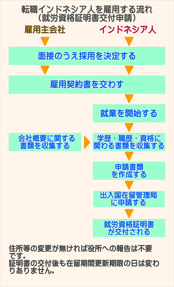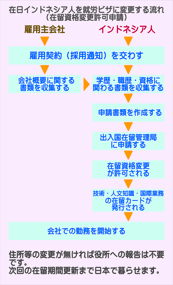 在日インドネシア人を採用し在留資格を「技術・人文知識・国際業務」に変更するする流れ