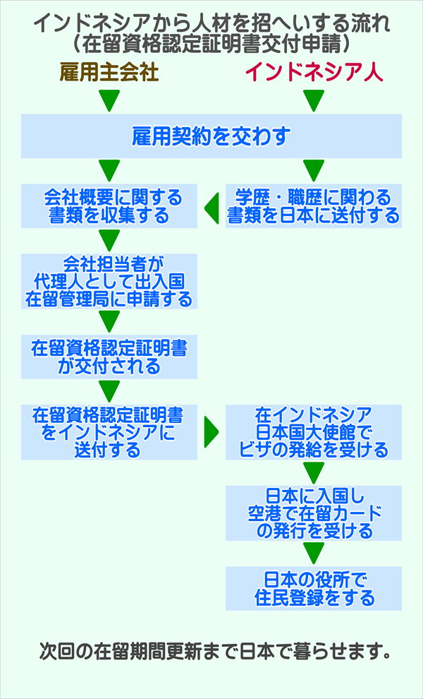 日本で既に在留資格が「技術・人文知識・国際業務」で働くインドネシア人を採用する流れ
