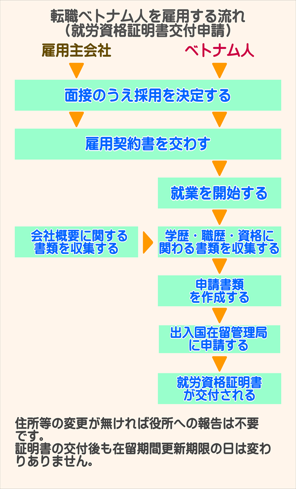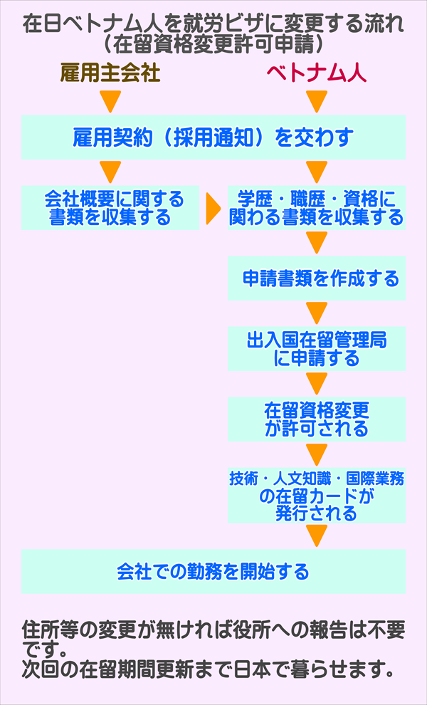 在日ベトナム人を採用し在留資格を「技術・人文知識・国際業務」に変更する流れ